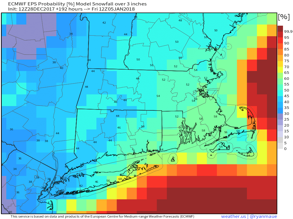 The Euro weeklies continue to show the cold weather easing by mid-January, with relatively mild weather in the second half of the month and early February. Don’t expect to wear tank tops and flip flops, but we should get out of the deep, deep freeze.